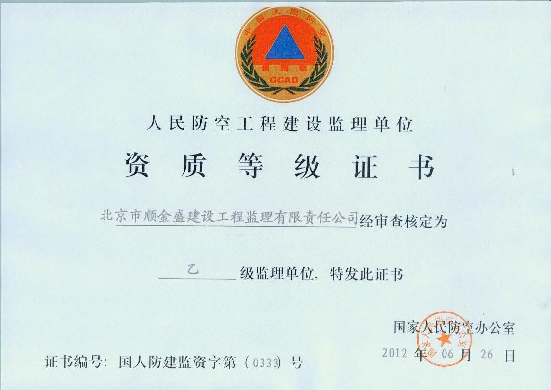 北京市順金盛建設(shè)工程監(jiān)理有限責(zé)任公司成立于1996年6月,具備房屋建筑工程監(jiān)理甲級(jí),市政公用工程監(jiān)理甲級(jí)資質(zhì),主要從事相應(yīng)類別建設(shè)工程的工程監(jiān)理、項(xiàng)目管理、技術(shù)咨詢業(yè)務(wù)。公司為北京市建設(shè)監(jiān)理協(xié)會(huì)理事單位、北京市民防協(xié)會(huì)會(huì)員單位。